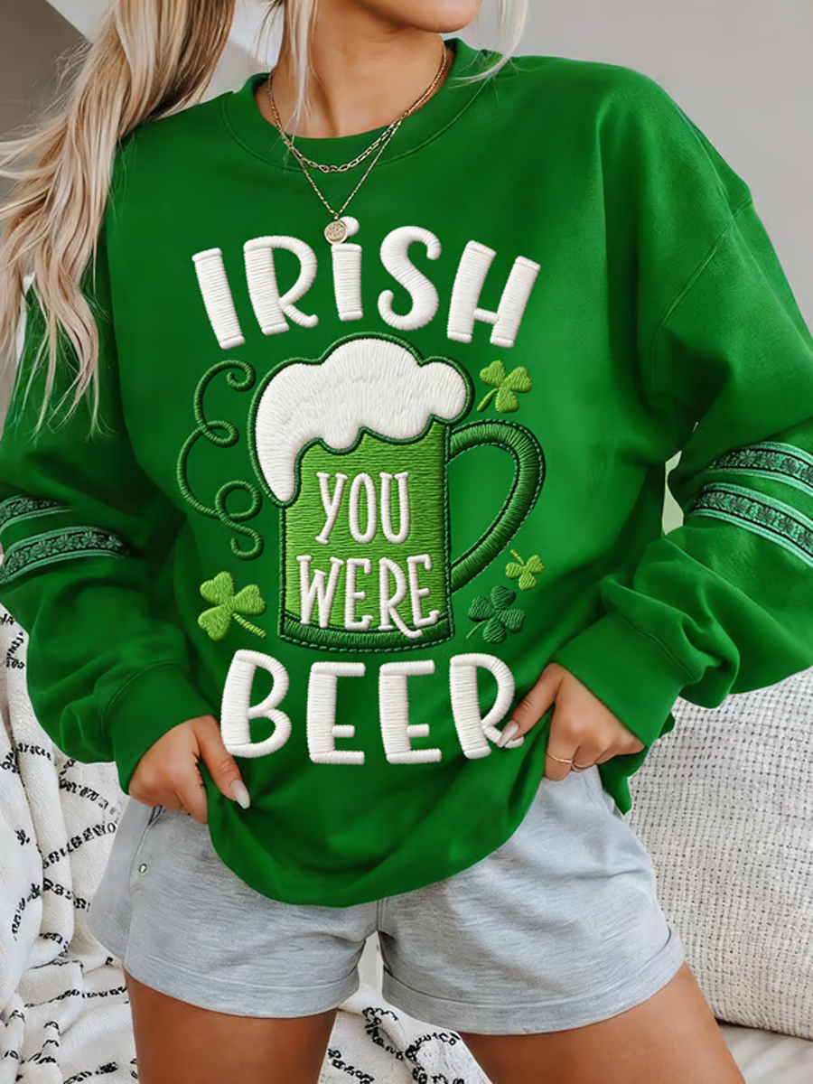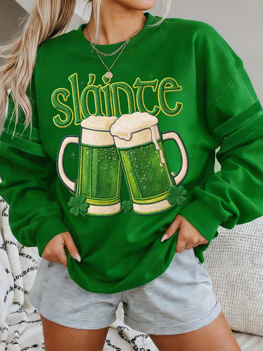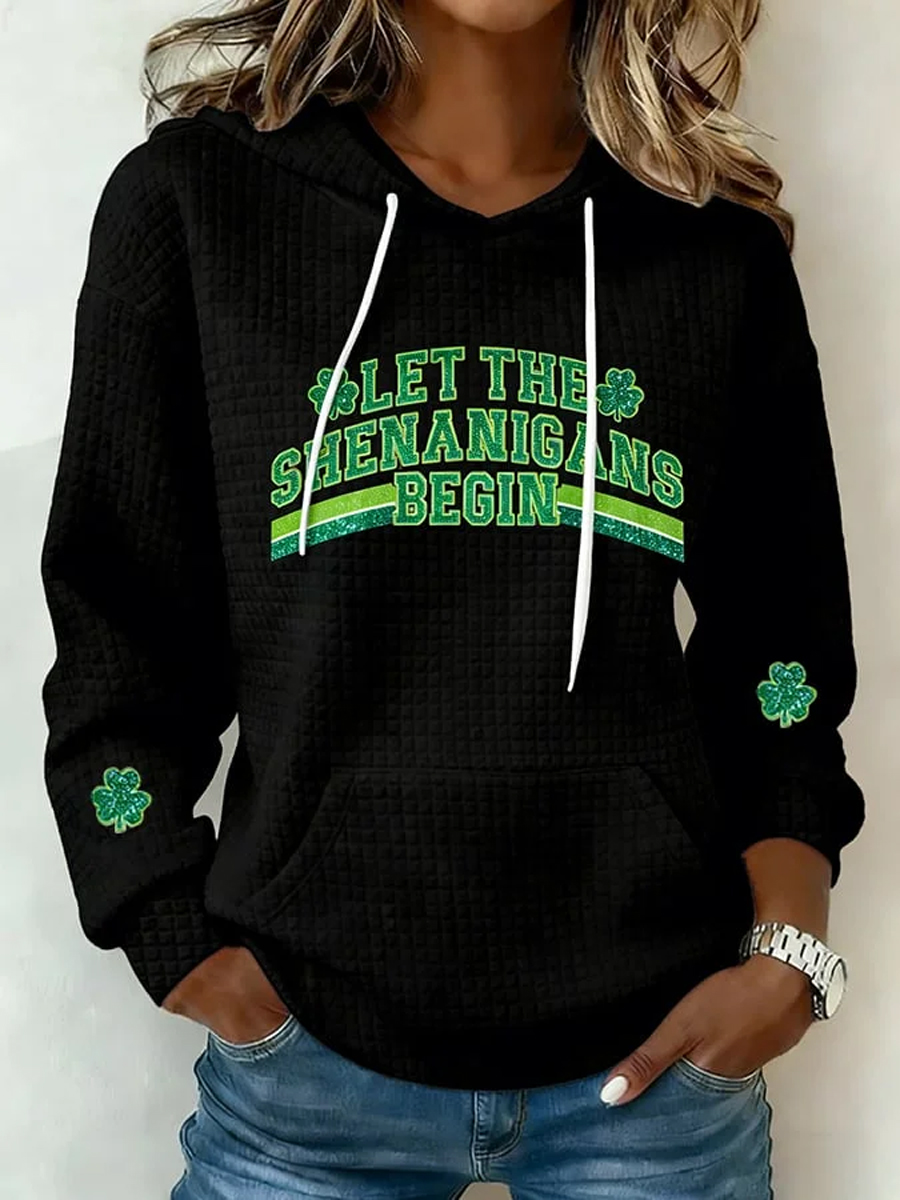 Women's St. Patrick's Day Shamrock Print Large-sized Hooded Sweatshirt