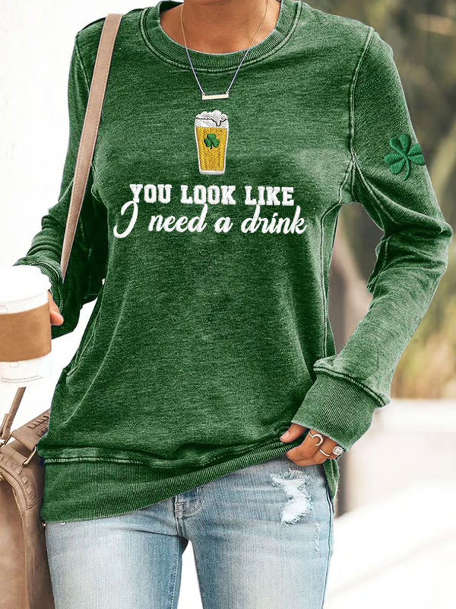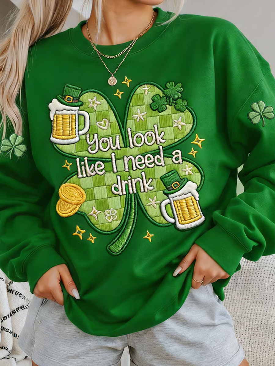 Women's St. Patrick's Day Shamrock Llarge-sized Hooded Sweatshirt